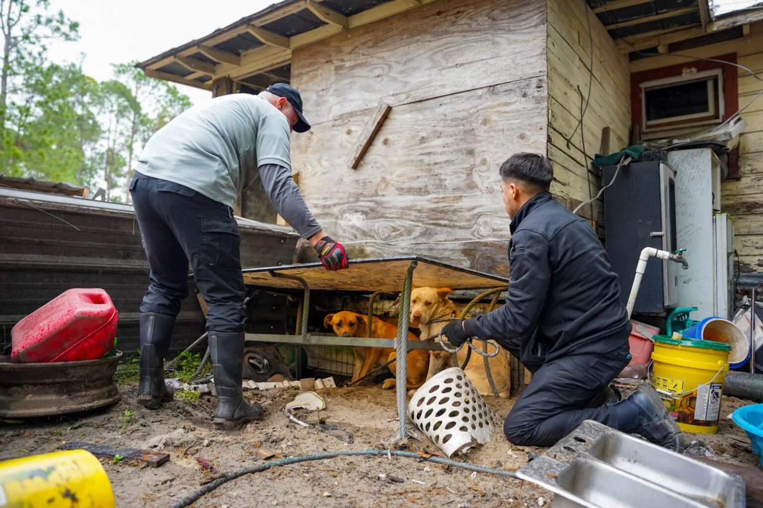 Our Operation Humane team is on the ground right now, rescuing 14 dogs from an abandoned property in South Georgia. They were left behind weeks ago when their owner moved away with no notice. No food... no clean water... no care... living among piles of trash inside and outside a home and trailer, searching for scraps and shelter in filth.